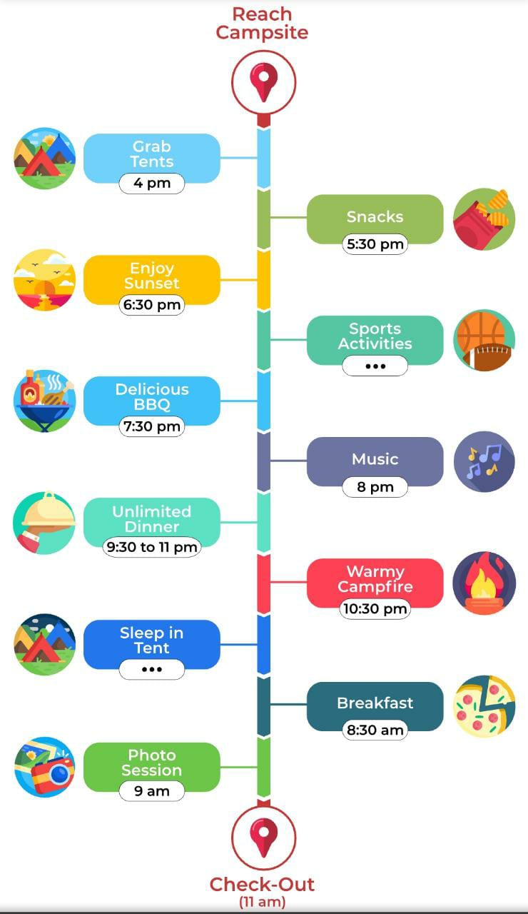 Pawna Campers offer lakeside camping. Including overnight stay in a tent, food, activities, campfire, music, etc. Pawna lake is the most popular lake in Lonawala for camping. Lake is surrounded by many beautiful mountains and forts. Tung, Tikona, Lohagad, Visapur are some of them. Three Historical caves nearby are also a tourist attraction, names are Bhaje caves, Bedse caves, and Karla caves. Pawna lake is just a short distance from Lonawala, around 12km only. Food served at the campsite is homemade quality food test may differ from regular restaurant food. Campsite food includes evening snacks, BBQ, Unlimited Dinner, and Morning breakfast.